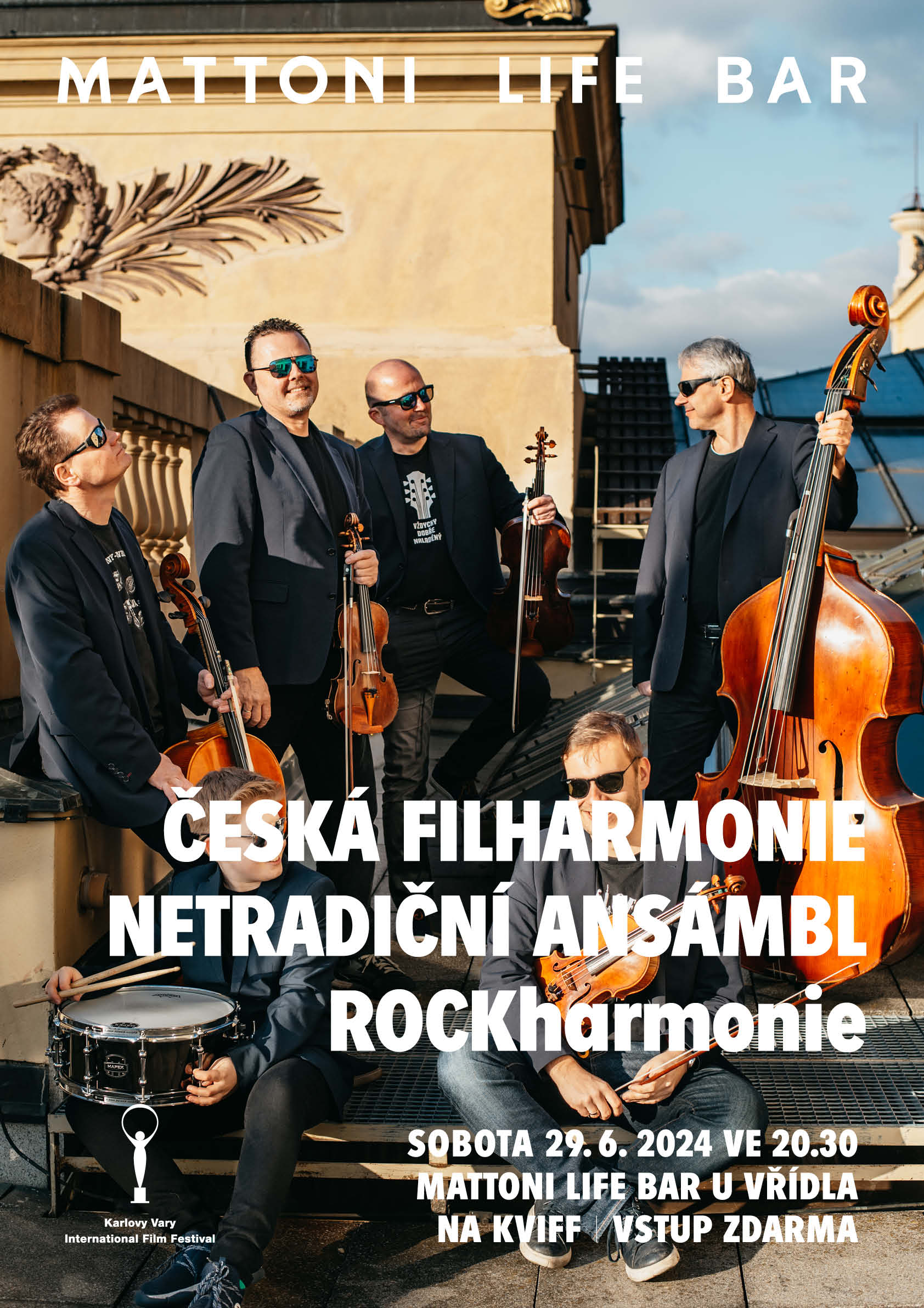 V průběhu sobotního koncertu RockHarmonie Mattoni také představí nové partnerství – od začátku další koncertní sezony se stává oficiální minerální vodou České filharmonie. Ta se tak vedle Národního muzea a Národního divadla stane další národní kulturní institucí, jež Mattoni podporuje. “Mattoni a kultura už dlouhé roky patří k sobě. Proto jsme nadšeni, že mezi partnery ji můžeme nyní přivítat i my. Koncert doprovázející pestrý program Mattoni Life Baru na filmovém festivalu bude skvělým a netradičním úvodem naší spolupráce, kterou jistě ozdobíme dalšími zajímavými projekty,” říká generální ředitel České filharmonie David Mareček.